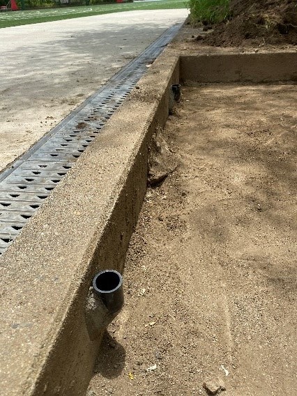 水位を一定に保つためのパイプをセメントで取り付け、準備OK。