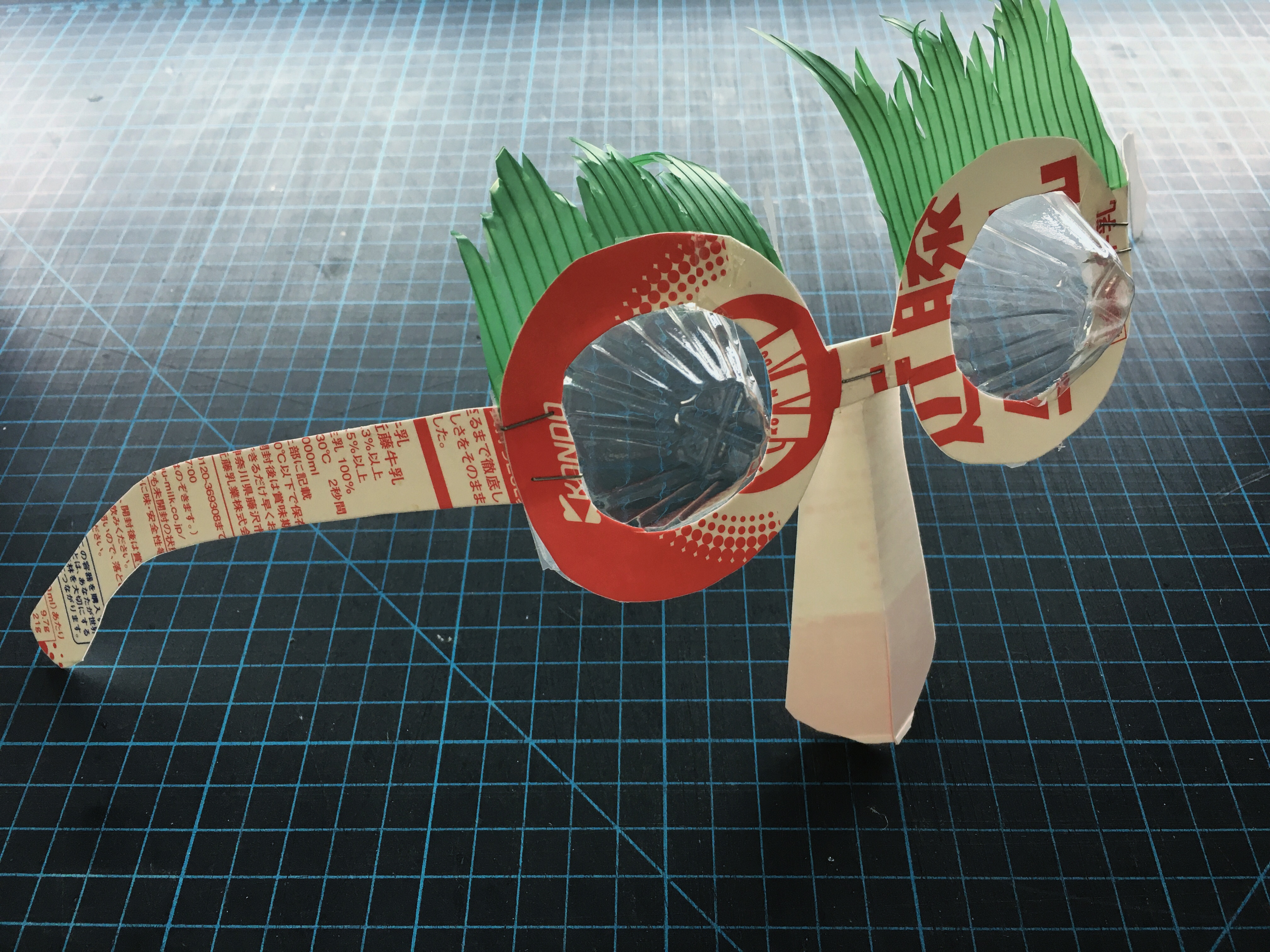 「へんしんめがね」 →5・6年生は低学年のころに作ったことがありますね。 家にある材料で作れないか、と私も挑戦してみました。