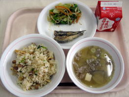 節分ごはん こいわしの唐揚げ ごまあえ 豚汁 牛乳