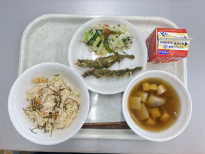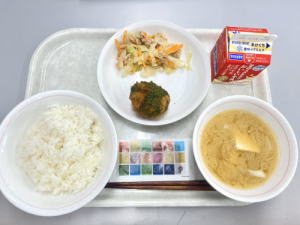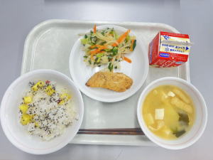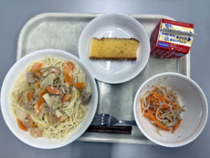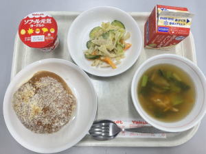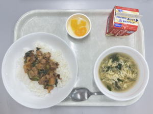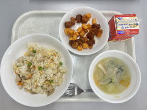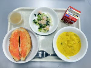 | カレーピラフきのこソースかけ・コーンサラダ・オレンジゼリー |