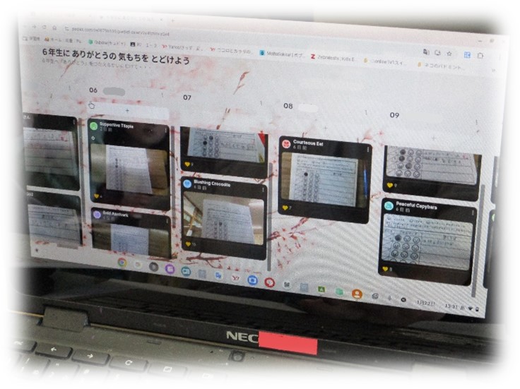 授業の振り返りをパドレットに提出し、クラス全体で共有しました。