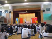 前半4分(低学年)休憩(1分)後半4分(高学年)、これが逃げ回る6年生には結構きつい! 本気で逃げれば逃げるほど、バテてきたようでした。でも、たくさんの下級生に追いかけ回されて、6年生にとっては幸せで楽しい時間だったことでしょうね。見ているだけでも微笑ましくなる児童集会でした。6年生、お疲れ様。