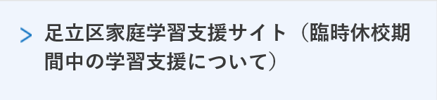 学習支援![]() 足立区家庭学習支援サイト ![]() 子どもの学び応援サイト ![]() 教育コンテンツ配信サービス Edumall ![]() ※ Edumall利用時のIDとパスワードは学校配信メールをご覧下さい。 ※ Edumall各コンテンツはパソコンやタブレット端末を想定しております。 (スマートフォンでは表示されないことがあります。) |