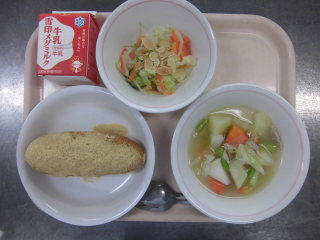| ココアパン ポテトグラタン 白菜スープ 牛乳 |