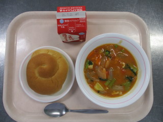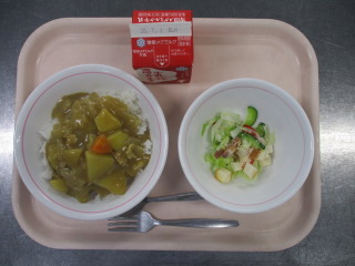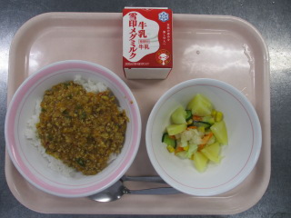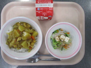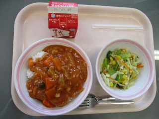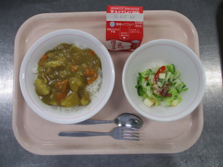 | チキンカレーライス 豆腐いりサラダ 牛乳 |