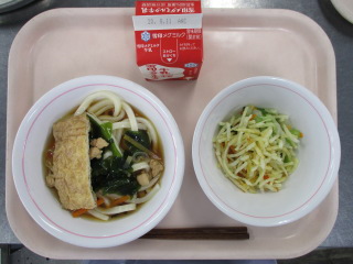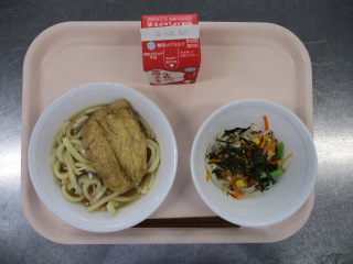 | 冷やしきつねうどん ポテトのハニーサラダ 牛乳 |