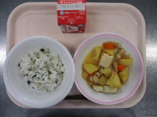 | わかめごはん じゃがいもの煮つけ 牛乳 |