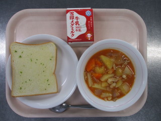 | ガーリックトースト ポークビーンズ 牛乳 |