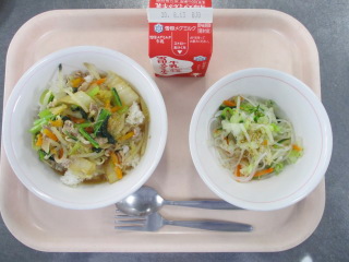 | 豚肉のクッパ 春雨サラダ 牛乳 |
