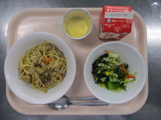 <食材の産地> 小松菜・・・足立区産 玉葱・・・北海道 しめじ・・・長野県 えのき・・・長野県 舞茸・・・群馬県 にんじん・・・千葉県 にんにく・・・青森県 キャベツ・・・愛知県 ※牛乳は、茨城県・千葉県・群馬県・栃木県・北海道・山形県・宮城県の原乳を使用しています。 ※現在出荷制限されている食材については、給食に使用していません。