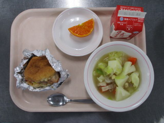 <食材の産地> じゃが芋・・・鹿児島県 にんじん・・・徳島県 玉葱・・・北海道 さやいんげん・・・長崎県 キャベツ・・・愛知県 もやし・・・栃木県 ※牛乳は、茨城県・千葉県・群馬県・栃木県・北海道・山形県・宮城県の原乳を使用しています。 ※現在出荷制限されている食材については、給食に使用していません。