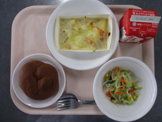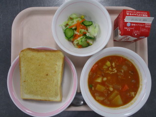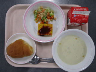 たまねぎ・・・北海道 じゃがいも・・・北海道 にんじん・・・北海道 きゃべつ・・・群馬県 きゅうり・・・茨城県 パセリ・・・長野県 コーン・・・北海道 しょうが・・・熊本県 ※牛乳は、茨城県・千葉県・群馬県・栃木県・北海道・山形県・宮城県の原乳を使用しています。 ※現在出荷制限されている食材については、給食に使用していません。