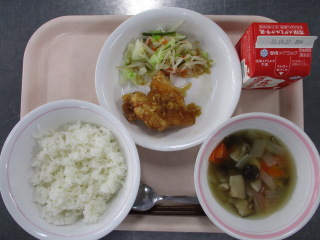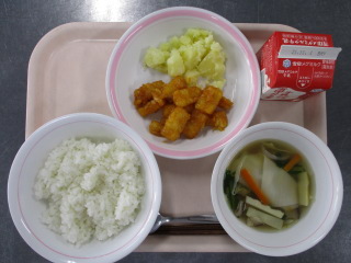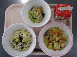 さつまいも・・・千葉県 たまねぎ・・・北海道 にんじん・・・北海道 きゃべつ・・・群馬県 しょうが・・・熊本県 こまつな・・・足立区 しめじ・・・長野県 ※牛乳は、茨城県・千葉県・群馬県・栃木県・北海道・山形県・宮城県の原乳を使用しています。 ※現在出荷制限されている食材については、給食に使用していません。
