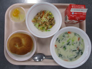 じゃがいも・・・北海道 にんじん・・・北海道 たまねぎ・・・北海道 もやし・・・栃木県 きゃべつ・・・群馬県 こまつな・・・茨城県 エリンギ・・・新潟県 ※牛乳は、茨城県・千葉県・群馬県・栃木県・北海道・山形県・宮城県の原乳を使用しています。 ※現在出荷制限されている食材については、給食に使用していません。