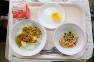 たまねぎ・・・北海道 にんじん・・・北海道 しめじ・・・長野県 えのき・・・長野県 にんにく・・・青森県 きゅうり・・・茨城県 きゃべつ・・・千葉県 さつまいも・・・千葉県 ※牛乳は、茨城県・千葉県・群馬県・栃木県・北海道・山形県・宮城県の原乳を使用しています。 ※現在出荷制限されている食材については、給食に使用していません。