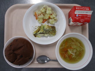 にんじん・・・青森県 たまねぎ・・・北海道 きゃべつ・・・千葉県 しめじ・・・長野県 だいこん・・・千葉県 ながねぎ・・・岩手県 こまつな・・・足立区 鮭・・・北海道 ※牛乳は、茨城県・千葉県・群馬県・栃木県・北海道・山形県・宮城県の原乳を使用しています。 ※現在出荷制限されている食材については、給食に使用していません。