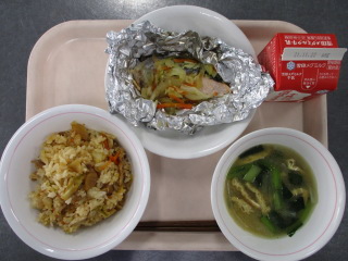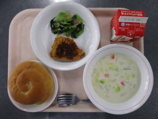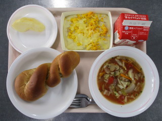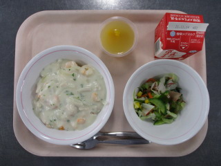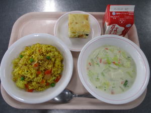 にんじん・・・千葉県 たまねぎ・・・北海道 ホールコーン・・・北海道 はくさい・・・茨城県 パセリ・・・千葉県 じゃがいも・・・北海道 しょうが・・・熊本県 えび・・・ベトナム いか・・・ペルー ※牛乳は、茨城県・千葉県・群馬県・栃木県・北海道・山形県・宮城県の原乳を使用しています。 ※現在出荷制限されている食材については、給食に使用していません。