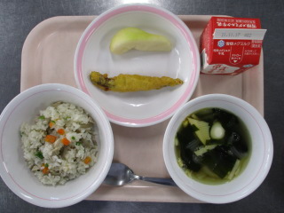 にんじん・・・北海道 たまねぎ・・・北海道 ごぼう・・・青森県 しょうが・・・熊本県 たけのこ・・・熊本県 ピーマン・・・茨城県 ホールコーン・・・北海道 西洋なし・・・山形県 ししゃも・・ノルウェー ※牛乳は、茨城県・千葉県・群馬県・栃木県・北海道・山形県・宮城県の原乳を使用しています。 ※現在出荷制限されている食材については、給食に使用していません。