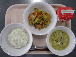 たまねぎ・・・北海道 にんじん・・・北海道 ピーマン・・・茨城県 しょうが・・・熊本県 じゃがいも・・・北海道 たけのこ・・・熊本県 ペルー・・・ペルー ※牛乳は、茨城県・千葉県・群馬県・栃木県・北海道・山形県・宮城県の原乳を使用しています。 ※現在出荷制限されている食材については、給食に使用していません。