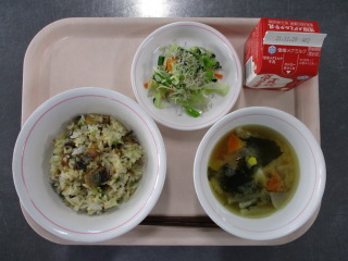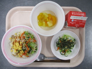 にんじん・・・北海道 たまねぎ・・・北海道 エリンギ・・・長野県 しょうが・・・熊本県 きゅうり・・・茨城県 きゃべつ・・・千葉県 パセリ・・・千葉県 えび・・・ミャンマー ※牛乳は、茨城県・千葉県・群馬県・栃木県・北海道・山形県・宮城県の原乳を使用しています。 ※現在出荷制限されている食材については、給食に使用していません。