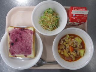たまねぎ・・・北海道 にんじん・・・千葉県 しょうが・・・熊本県 きゃべつ・・・愛知県 じゃがいも・・・北海道 セロリ・・・長野県 にんにく・・・青森県 パセリ・・・千葉県 りんご・・・長野県 ※牛乳は、茨城県・千葉県・群馬県・栃木県・北海道・山形県・宮城県の原乳を使用しています。 ※現在出荷制限されている食材については、給食に使用していません。