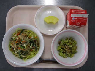 にんじん・・・千葉県 しょうが・・・熊本県 にんにく・・・青森県 にら・・・茨城県 たまねぎ・・・北海道 もやし・・・栃木県 ながねぎ・・・岩手県 ホールコーン・・・北海道 じゃがいも・・・北海道 パイナップル・・・フィリピン ※牛乳は、茨城県・千葉県・群馬県・栃木県・北海道・山形県・宮城県の原乳を使用しています。 ※現在出荷制限されている食材については、給食に使用していません。