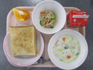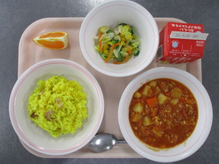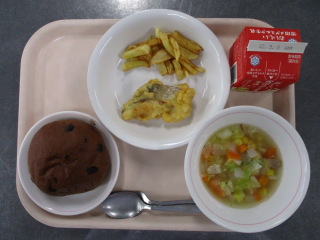 にんじん・・・徳島県 じゃがいも・・・長崎県 たまねぎ・・・佐賀県 きゃべつ・・・神奈川県 パセリ・・・静岡県 しょうが・・・熊本県 ホールコーン・・・北海道 ベーコン・・・千葉県 たまご・・・青森県 メルルーサ・・・アルゼンチン ※牛乳は、茨城県・千葉県・群馬県・栃木県・北海道・山形県・宮城県の原乳を使用しています。 ※現在出荷制限されている食材については、給食に使用していません。