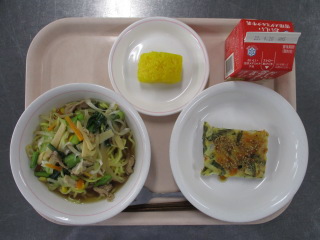 たけのこ・・・熊本県 にんじん・・・徳島県 ながねぎ・・・千葉県 こまつな・・・足立区 にんにく・・・青森県 しょうが・・・熊本県 たまねぎ・・・静岡県 ホールコーン・・・北海道 にら・・・茨城県 パイナップル・・・フィリピン ぶたにく・・・千葉県 ※牛乳は、茨城県・千葉県・群馬県・栃木県・北海道・山形県・宮城県の原乳を使用しています。 ※現在出荷制限されている食材については、給食に使用していません。