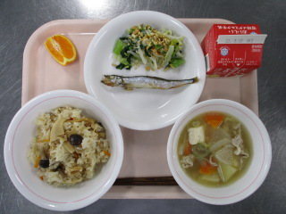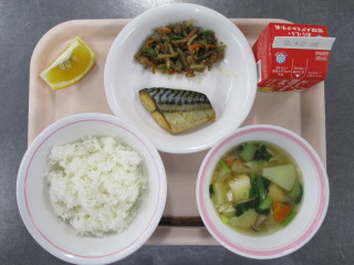 ごぼう・・・青森県 にんじん・・・徳島県 じゃがいも・・・鹿児島県 さやいんげん・・・鹿児島県 だいこん・・・千葉県 しめじ・・・山形県 ながねぎ・・・千葉県 こまつな・・・足立区 美生柑・・・愛媛県 ぶたにく・・・千葉県 サバ・・・ノルウェー こめ・・・青森県 ※牛乳は、茨城県・千葉県・群馬県・栃木県・北海道・山形県・宮城県の原乳を使用しています。 ※現在出荷制限されている食材については、給食に使用していません。