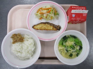 にんじん・・・徳島県 はくさい・・・茨城県 ながねぎ・・・千葉県 えのきたけ・・・新潟県 じゃがいも・・・鹿児島県 こまつな・・・足立区 サメ・・・宮城県 米・・・青森県 ※牛乳は、茨城県・千葉県・群馬県・栃木県・北海道・山形県・宮城県の原乳を使用しています。 ※現在出荷制限されている食材については、給食に使用していません。