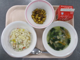 にんじん・・・福島県 たまねぎ・・・佐賀県 しょうが・・・熊本県 ピーマン・・・茨城県 きゃべつ・・・神奈川県 ほうれんそう・・・熊本県 エリンギ・・・新潟県 いか・・・ペルー えび・・・インドネシア レバー・・・茨城県 こめ・・・秋田県 ※牛乳は、茨城県・千葉県・群馬県・栃木県・北海道・山形県・宮城県の原乳を使用しています。 ※現在出荷制限されている食材については、給食に使用していません。