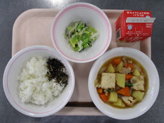 たまねぎ・・・静岡県 じゃがいも・・・鹿児島県 にんじん・・・徳島県 きゃべつ・・・神奈川県 きゅうり・・・茨城県 ながねぎ・・・千葉県 しょうが・・・熊本県 とりにく・・・山梨県 ※牛乳は、茨城県・千葉県・群馬県・栃木県・北海道・山形県・宮城県の原乳を使用しています。 ※現在出荷制限されている食材については、給食に使用していません。