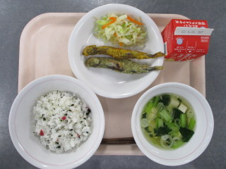 きゅうり・・・茨城県 もやし・・・栃木県 にんじん・・・千葉県 じゃがいも・・・長崎県 ホールコーン・・・北海道 ささみ・・・山梨県 たこ・・・北海道 かつおぶし・・・静岡県 ※牛乳は、茨城県・千葉県・群馬県・栃木県・北海道・山形県・宮城県の原乳を使用しています。 ※現在出荷制限されている食材については、給食に使用していません。
