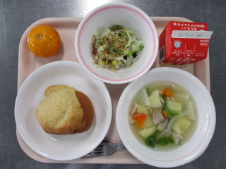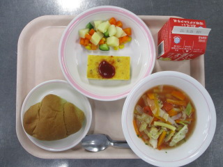 じゃがいも・・・長崎県 ズッキーニ・・・茨城県 セロリ・・・長野県 にんにく・・・青森県 たまねぎ・・・兵庫県 きゃべつ・・・茨城県 にんじん・・・千葉県 きゅうり・・・茨城県 ホールコーン・・・北海道 ぶたにく・・・千葉県 ※牛乳は、茨城県・千葉県・群馬県・栃木県・北海道・山形県・宮城県の原乳を使用しています。 ※現在出荷制限されている食材については、給食に使用していません。