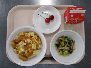 にんにく・・・青森県 しょうが・・・熊本県 たまねぎ・・・佐賀県 もやし・・・栃木県 ながねぎ・・・千葉県 にんじん・・・千葉県 こまつな・・・足立区 さくらんぼ・・・山形県 いか・・・ペルー ※牛乳は、茨城県・千葉県・群馬県・栃木県・北海道・山形県・宮城県の原乳を使用しています。 ※現在出荷制限されている食材については、給食に使用していません。