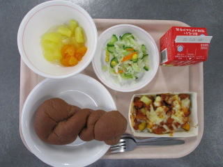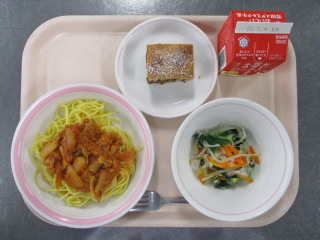 たまねぎ・・・佐賀県 しょうが・・・熊本県 にんにく・・・青森県 にんじん・・・千葉県 きゃべつ・・・愛知県 ホールコーン・・・北海道 パセリ・・・千葉県 ぶたにく・・・千葉県 ※牛乳は、茨城県・千葉県・群馬県・栃木県・北海道・山形県・宮城県の原乳を使用しています。 ※現在出荷制限されている食材については、給食に使用していません。