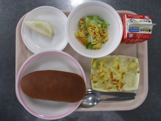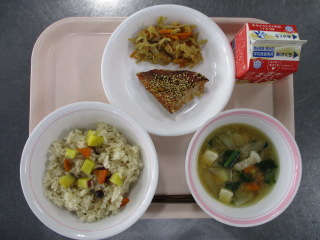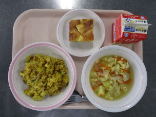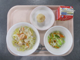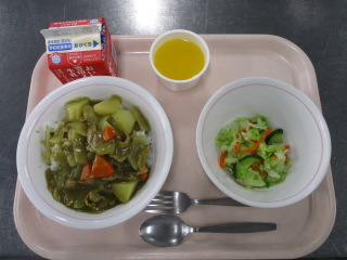 玉ねぎ・・・北海道 にんじん・・・北海道 エリンギ・・・新潟県 ピーマン・・・茨城県 きゃべつ・・・群馬県 じゃが芋・・・北海道 しょうが・・・熊本県 さつま芋・・・千葉県 ぶた肉・・・千葉県 えび・・・インド いか・・・ペルー 米・・・秋田県