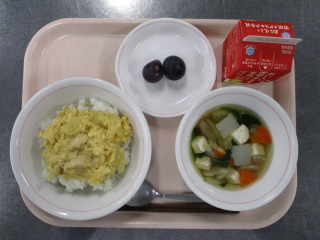 玉ねぎ・・・北海道 にんじん・・・北海道 だいこん・・・北海道 ごぼう・・・青森県 だいこん・・・北海道 こまつな・・・・足立区 巨峰・・・山梨県 とり肉・・・山梨県 たまご・・・青森県 米・・・青森県