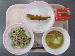 ごぼう・・・鹿児島県 にんじん・・・埼玉県 きゃべつ・・・愛知県 玉ねぎ・・・北海道 かぶ・・・千葉県 さやいんげん・・・長崎県 にんにく・・・青森県 しょうが・・・熊本県 ウインナー・・・千葉県 ぶた肉・・・千葉県 米・・・山形県