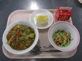 じゃが芋・・・北海道 玉ねぎ・・・北海道 にんじん・・・千葉県 しょうが・・・熊本県 にんにく・・・青森県 もやし・・・栃木県 きゃべつ・・・愛知県 こまつな・・・足立区 りんご・・・青森県 ぶた肉・・・千葉県 米・・・秋田県