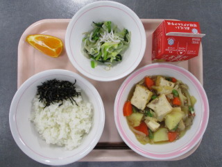 にんにく・・・青森県 じゃが芋・・・鹿児島県 玉ねぎ・・・北海道 にんじん・・・千葉県 しめじ・・・長野県 さやいんげん・・・沖縄県 きゃべつ・・・愛知県 もやし・・・栃木県 こまつな・・・足立区 だいこん・・・千葉県 デコポン・・・鹿児島県 しらす・・・和歌山県 ぶた肉・・・千葉県 米・・・秋田県