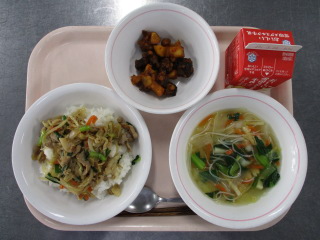 玉ねぎ・・・北海道 にんじん・・・千葉県 さやいんげん・・・沖縄県 きゃべつ・・・愛知県 もやし・・・栃木県 こまつな・・・足立区 だいこん・・・千葉県 ごぼう・・・茨城県 長ねぎ・・・千葉県 たまご・・・青森県 とり肉・・・山梨県 米・・・秋田県