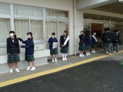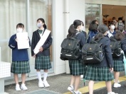 今朝、校長室の窓を開けるととても元気なあいさつ声が聞こえてきました。思わず玄関に降りると、新規生徒会役員に立候補した生徒が選挙活動を行っていました。
