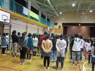 校長先生からも励ましの温かいお言葉をいただきました。 続いて、各学年の出し物。この日のために、練習をしてきました。