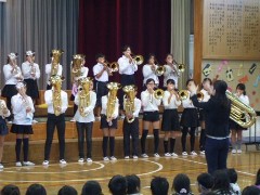 各学年の最後に登場したのは6年生。合唱「ふるさと」は、ソプラノとアルトの美しいハーモニーが体育館に響いていました。合奏「情熱大陸」は、手拍子で会場と一体になり、テンポのよい迫力ある演奏で会場を引き込みました。