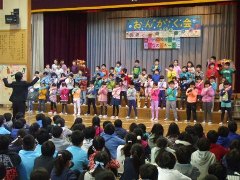 続いて1年生。合唱は「もしもコックさんだったなら」。コックさんの道具を使ったリズムうちもあり、楽しく元気に大きな声で歌っていました。合奏「スイング デ チューリップ」は、1年生にとって初めての演奏でしたが、一人一人真剣に取り組む姿がかっこよかったです。