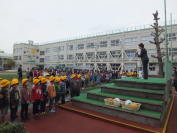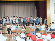 1年生がこの1年間でできるようになったことを発表しました。なわとび、音読、百人一首、計算、鍵盤ハーモニカの演奏。とても上手でした。それを見守る2年生以上の子どもたちはしっかり上手になったことに拍手を送っていました。特に目を細めて見守る6年生が印象的でした。