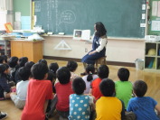 今年も図書ボランティアによる読み語りが始まりました。図書ボランティアの方々は、本を選んだあと、たくさん練習して子どもたちの前で読んでくださいます。子どもたちは、お話に引き込まれるように食い入ってお話を聞きます。