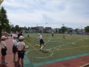 今朝は校庭でクラス遊びをしました。クラスごとにみんなで仲良く遊べるものを選び、楽しく遊びました。6年生は1年生に長縄の跳び方を教えてあげていました。