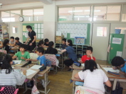 今年度から3・4年生も外国語活動をしています。担任と外国語アドバイザーの先生と一緒に行っています。今日は数字の学習で一緒に発音しながら楽しくゲームに取り組みました。